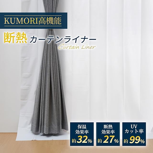クモリ(Kumori) 省エネ カーテンライナー 夏涼しく 冬あったかい 冷暖房効率アップ 撥水性 UVカット率99% 節電 取り付け簡単 フック付きで届いたらすぐ使える 長さを自由にカット可能 断熱カーテンライナー 窓 遮熱カーテン オールシーズン 夏冬兼用(約幅100cm×丈200cm 2枚入・ホワイト)