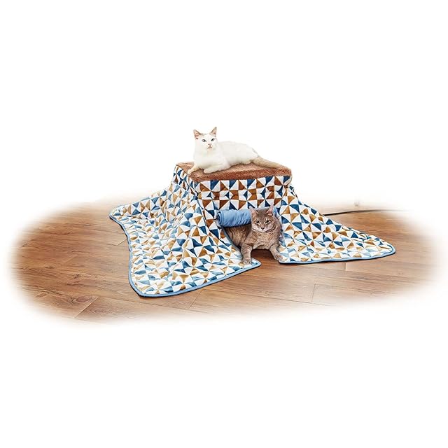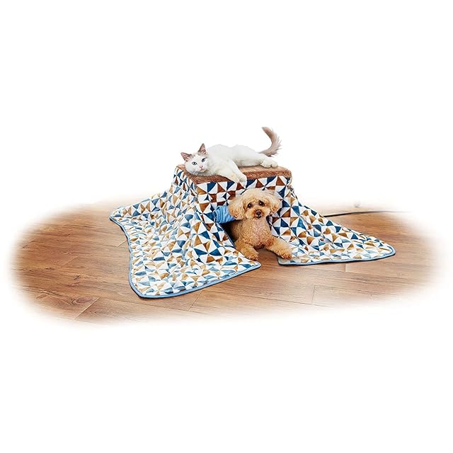ペティオ (Petio) 犬猫用 カラダ全体をあたためるペットのための電気こたつ2 抗菌防臭生地 三角柄 ファー 110L x 110W x 32H cm
