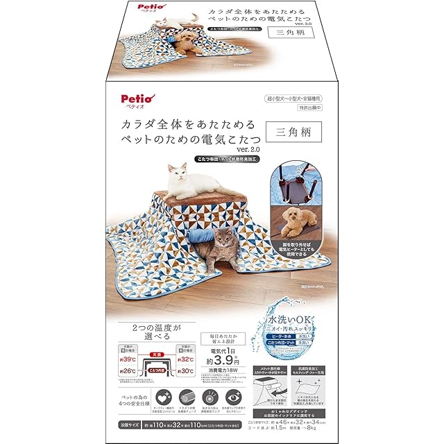 商品名:ペティオ (Petio) 犬猫用 カラダ全体をあたためるペットのための電気こたつ2 抗菌防臭生地 三角柄 ファー 110L x 110W x 32H cm