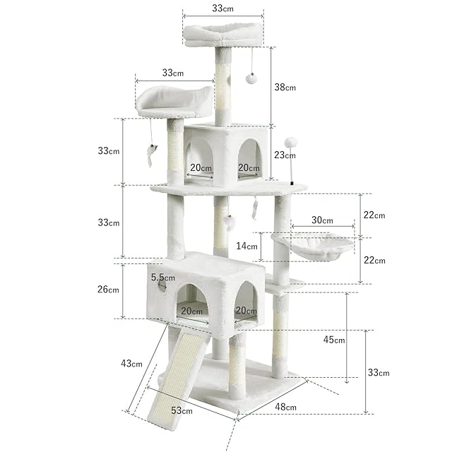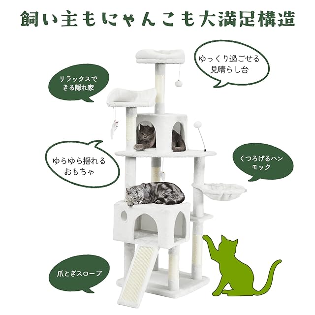 AIFY キャットタワー 据え置き スリム 大型猫 大型 中型 多頭飼い ハンモック おしゃれ 木製 爪とぎ 人気 おもちゃ 猫タワー ねこ 安定 頑丈 爪研ぎ 麻紐 子猫 シニア 省スペース 170cm アイボリー