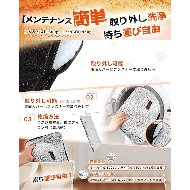 極細炭素繊維ペットホットマット:独自の繊維を採用し、保温性能が通常のペットマットの1.5倍!ふわふわで柔らかい生地がペットの肉球を優しく包み込み、内部は静音素材を使用しているため、ペットが動いてもサラサラと不快な音が立てず、安眠を妨げません。