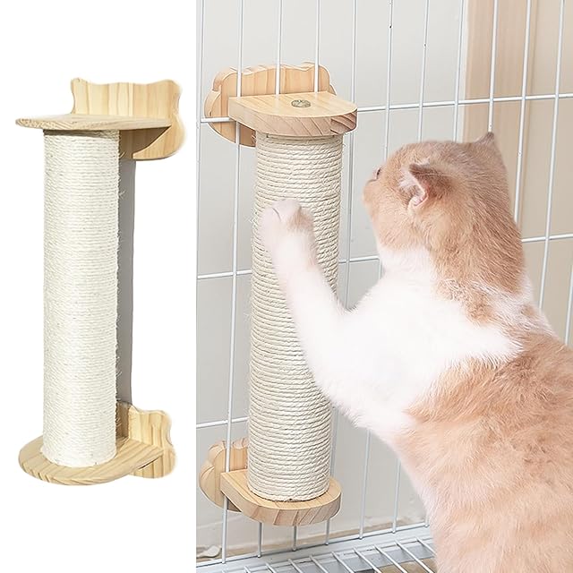 爪とぎ 猫 ケージ用 歯磨き 猫遊び 天然麻縄 天然木 スクラッチポール 縦置横置 頑丈 ストレス解消 運動不足解消 肥満対策 省スペース プレゼント 30cm