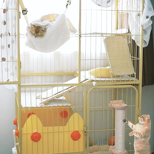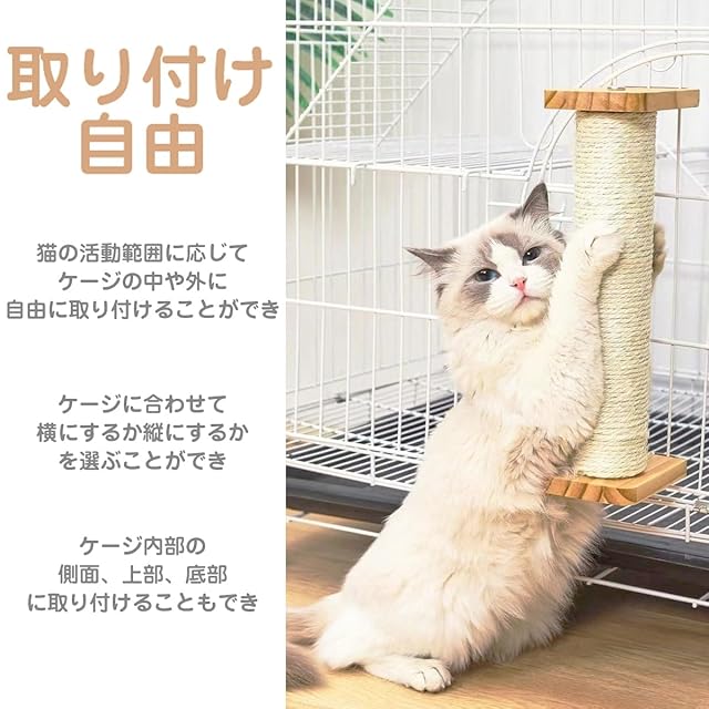 【省スペース】:ケージに合わせて横にするか縦にするかを選ぶことができ、ケージ内部の側面、上部、底部に取り付けることもでき、ケージの外に取り付けることもでき、限られたスペースを有効に活用、邪魔になりません。猫ちゃんのお気に入りの場所が爪とぎスペースになるので、猫ちゃんも飼い主さんも大満足です。