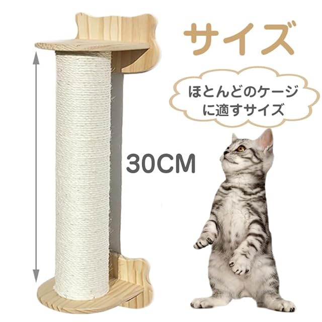 商品名:爪とぎ 猫 ケージ用 歯磨き 猫遊び 天然麻縄 天然木 スクラッチポール 縦置横置 頑丈 ストレス解消 運動不足解消 肥満対策 省スペース プレゼント 30cm