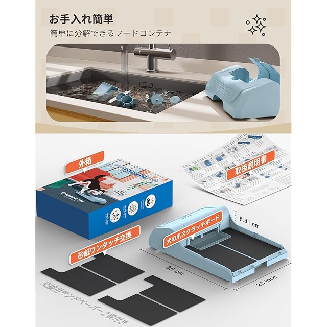 【簡単分解クリーニング&サンドペーパー交換可能】 フードコンテナは簡単に分解、清掃することができ、常に清潔な状態を保つことができます。そのためスクラッチパッドには常に衛生的なフードを供給することができます。