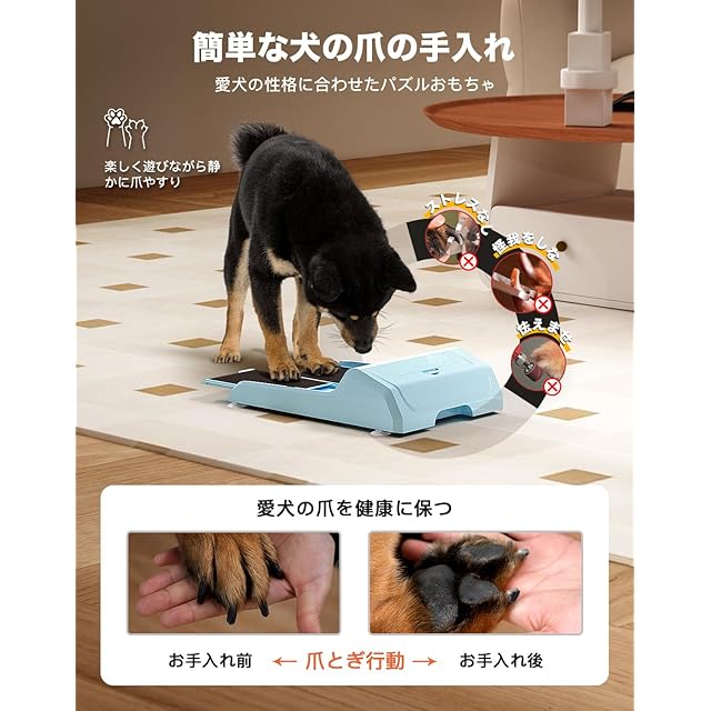 【犬の爪やすり&インタラクティブドッグパズルトイ】WOWOOF PET犬用爪研ぎボードは、犬が自然に爪研ぎができるように行動を促します。犬が2つのフードボックスに興味を持つことで、自然と爪を研ぐ動作になります。WOWOOF PET犬用爪研ぎボードは、爪研ぎ器であると同時に犬に爪に健やかさをもたらす付加価値を兼ね備えています。インタラクティブな犬用おもちゃで遊びながら、愛犬に爪研ぎをすることで脳の活性化も図れます。