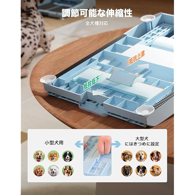 【ばね強度調整可能&全犬種対応】犬種や体重の違いを考慮し、ばねの強度を調整できる設計としました。愛犬の体格や体重により、爪研ぎボードの弾力性を調整できるので、全ての愛犬に対応できます。