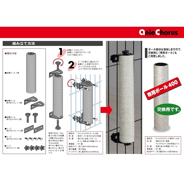 アニーコーラス ペット用品 キャットわくわくポール400 爪とぎポール