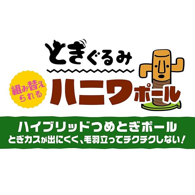 組み替えられるかわいいハニワ型のつめとぎポール!とぎカスが出にくく、毛羽立ってチクチクしないハイブリッドつめとぎポール使用!