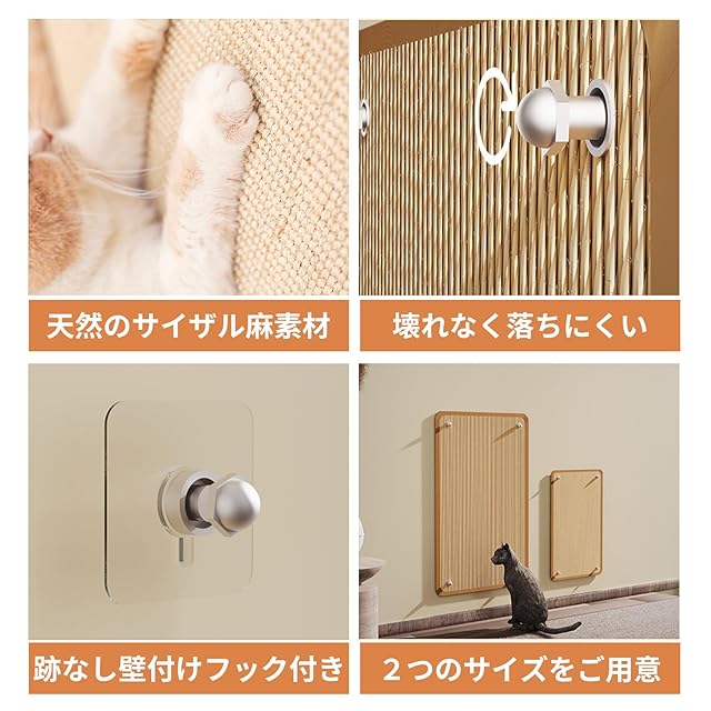 商品名:MONIWOLLY 猫 スクラッチャー 壁に貼れる 天然サイザル麻 爪研ぎシート 家具保護 天然素材 猫 爪とぎ 麻 爪とぎシート スクラッチパッド つめとぎシート サイザル麻マット 耐久 取り付け簡単 ストレス解消 (壁掛け 30*40cm)