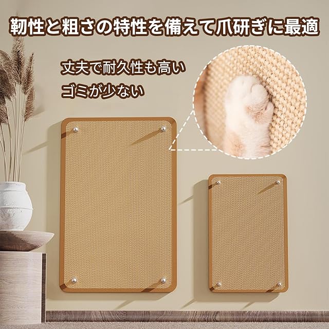 MONIWOLLY 猫 スクラッチャー 壁に貼れる 天然サイザル麻 爪研ぎシート 家具保護 天然素材 猫 爪とぎ 麻 爪とぎシート スクラッチパッド つめとぎシート サイザル麻マット 耐久 取り付け簡単 ストレス解消 (壁掛け 30*40cm)
