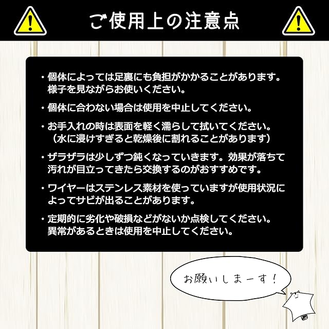 個体によっては足裏にも負担がかかるので、様子を見ながら使ってください。