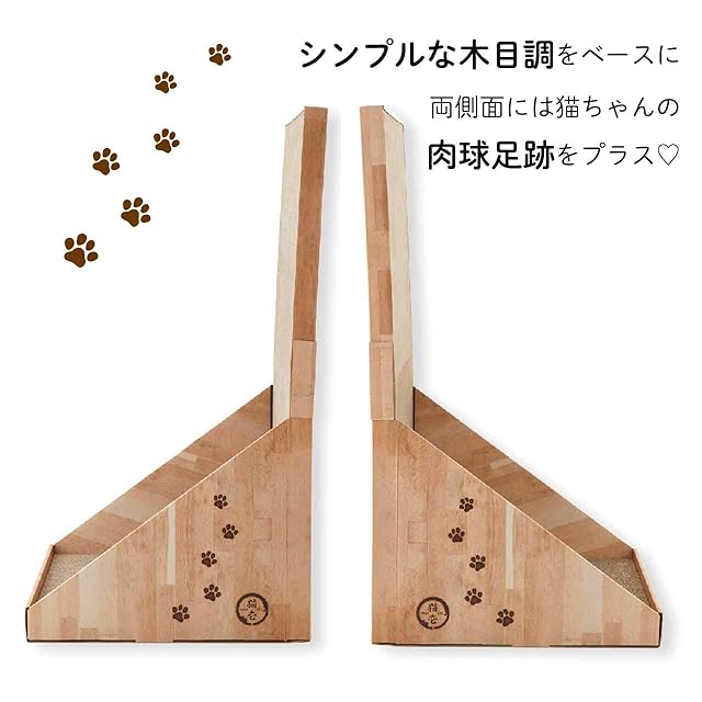【シンプル&可愛いデザイン】高さ70cmの大きな爪とぎですが、シンプルな木目調のデザインなので、 リビングに置いてもお家のインテリアを邪魔しません。側面には猫壱のロゴと肉球模様を加え、可愛らしさも忘れていません