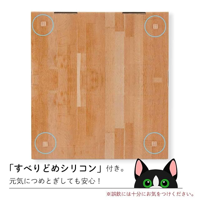 【すべりどめシリコン付き】底面の4角に貼り付けて使えるすべりどめシリコンを付属しています。 元気にバリバリしても、爪とぎが動いてしまう心配がありません。 ※すべりどめシリコンの誤飲には十分にお気をつけください。安全のため、壁などに沿わせてご使用ください。