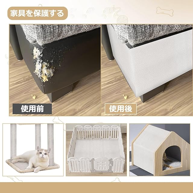 【取り付けとお手入れが簡単】ハードウェアやツールは不要で、ソファ、猫の家、家具の内側または外側に剥がして貼り付けるだけです。素材は柔軟で耐久性があり、取り付けが非常に簡単です。