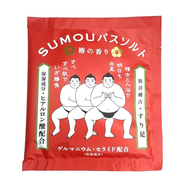 ※ばら売りページです、ご了承下さい。<br> <br> 大人気のSUMOUバスソルトがリニューアルしました!<br> <br> <br> 素肌自慢の力士たち、美肌は稽古と入浴のたまもの。<br> 日々の稽古で切磋琢磨し風呂で汗を流す<br> 肌活稽古に励む姿をイメージしたバスソルトです。<br> <br> <br> フレーバー3種<br> <br> ☆【桃の香り(PK・四股踏み)】〜ぷるぷる肌は日々の稽古と入浴による努力の賜物〜<br> ・透き通った桃色の湯<br> ・保湿成分<コラーゲン、乳酸菌(乳酸桿菌)、ゲルマニウム、ショウブ根エキス>配合<br> <br> 四股踏み稽古とは・・・<br> 相撲で下半身強化をする上で最も大切な動作。「強い力士ほどたくさん四股を踏んでいる」と<br> 言われる。<br> <br> <br> ☆【ゆずの香り(BL・テッポウ)】〜乾燥を迎え打つ!稽古と入浴ですっきり肌を引き締める〜<br> ・透き通った黄金色の湯<br> ・保湿成分<ビタミンC(アスコルビルグルコシド)、CICA(ツボクサ葉/茎エキス)、<br> ユズ果実エキス、ゲルマニウム、ショウブ根エキス>配合<br> <br> テッポウ稽古とは・・・<br> 相撲の稽古場には必ず「テッポウ柱」という専用の柱があり、その柱に向かって両手両足を交互に動かす運動のこと。<br> <br> <br> ☆【椿の香り(RD・すり足)】〜稽古と入浴で明日も白星。すべすべ肌でいざ勝負〜<br> ・乳白色の湯<br> ・保湿成分<ヒアルロン酸、セラミド、ゲルマニウム、ショウブ根エキス>配合<br> <br> すり足稽古とは・・・<br> 地面から足の裏を離さず、”する”ように足を運ぶ歩行のこと。<br> <br> <br> 【国産、日本製、和風、和、相撲、入浴剤、発汗、縁起物】<br>
