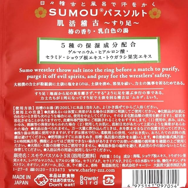 商品名:バスソルト SUMOUバスソルト チャーリー 和風 選べる3種類 ばら売り 相撲モチーフ 肌活稽古 (椿(赤))