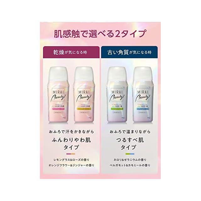 【MIRAI beauty】いつものおふろを美容の時間に変える! おふろにつかりながら、キメの整った透明感あふれる肌へ。なりたい肌感触で選べる入浴料シリーズ。