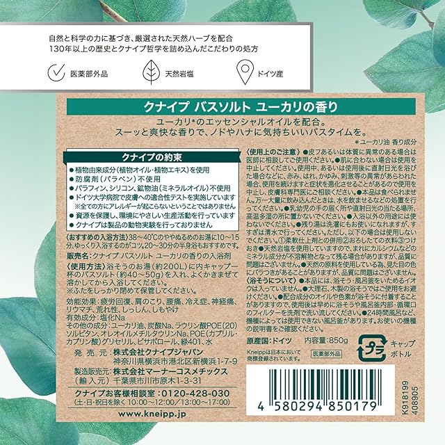 商品名:クナイプ バスソルト ユーカリ 850g