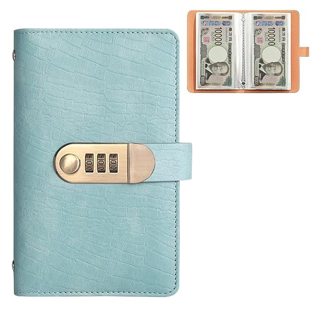 お札 貯金箱 内側のページ 50 ページ お札100枚収納 コンビネーションロッ 貯札帳 仕事 防水 大人と子供向け(レイクブルー)