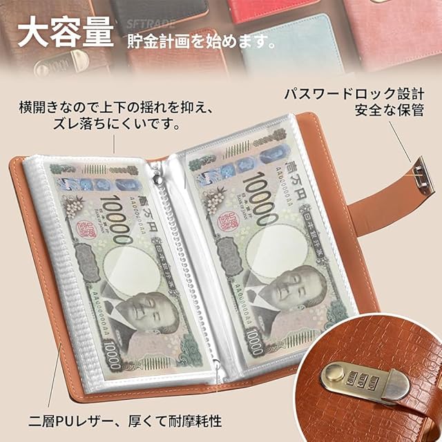 商品名:お札 貯金箱 内側のページ 50 ページ お札100枚収納 コンビネーションロッ 貯札帳 仕事 防水 大人と子供向け(レイクブルー)