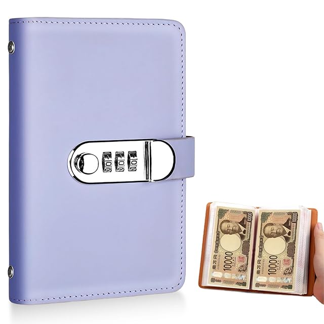 Mitoland 本型 貯金箱 パスワードロック 50ポケット 100万円 チャレンジ PUレザー製 パープル