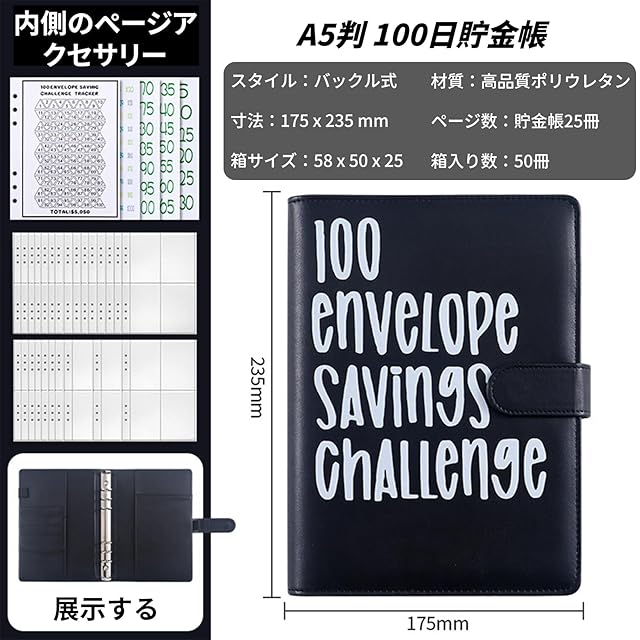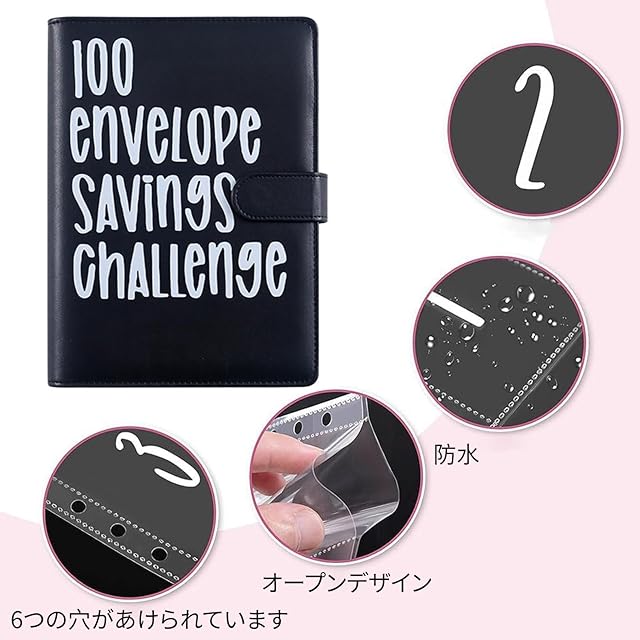 商品名:BLOOPIC 貯金バインダー A5 100日間節約チャレンジ 6穴 家計管理 お金管理 手帳 PU A5 節約バインダー カップルチャレンジ 現金 名刺 カード メモ紙入れ (ブラック)スタイル1