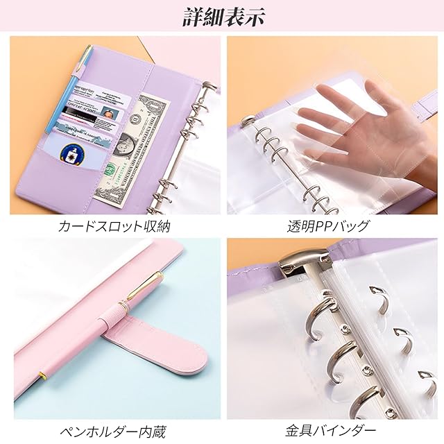 【自分仕様にカスタマイズ】:6穴タイプのA5サイズバインダーは、ファスナーポケットや紙リフィルの追加も可能。旅行資金、借金返済、家計簿、イベント積立など、目的に合わせて自分だけのオリジナル貯金バインダーを作成できます。カップルや家族での共有にもおすすめ。