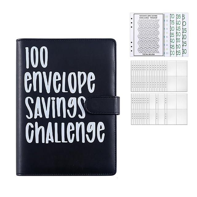 BLOOPIC 貯金バインダー A5 100日間節約チャレンジ 6穴 家計管理 お金管理 手帳 PU A5 節約バインダー カップルチャレンジ 現金 名刺 カード メモ紙入れ (ブラック)スタイル1