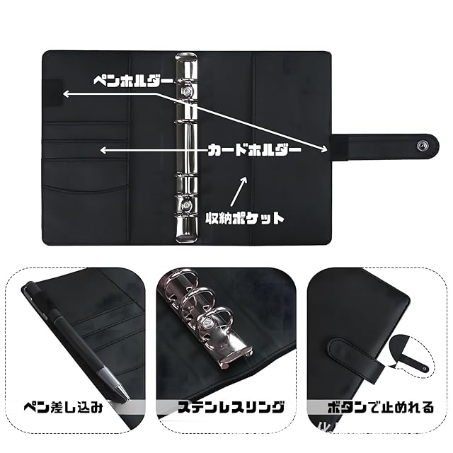 【高品質なPUレザー】このバインダーは、耐久性のあるPUレザーを使用しており、長期間の使用にも耐えられます。高級感のあるデザインで、ビジネスシーンでもプライベートでもスタイリッシュに使用できます。手触りも良く、持ち運びにも便利です。
