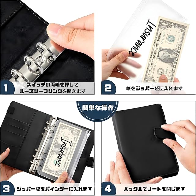 【効率的な家計管理】このバインダーは、12個のポケットとラベル付きで、予算管理を簡単にします。各ポケットに異なる費目を割り当てることで、支出を視覚的に把握しやすくなり、無駄遣いを防ぎます。これにより、家計の見直しがスムーズに行え、貯蓄目標達成への道が開けます。 【高品質なPUレザー】このバインダーは、耐久性のあるPUレザーを使用しており、長期間の使用にも耐えられます。高級感のあるデザインで、ビジネスシーンでもプライベートでもスタイリッシュに使用できます。手触りも良く、持ち運びにも便利です。 【多機能な収納力】6穴のルーズリーフバインダーとして、書類や伝票、名刺、メモ紙などを整理整頓できます。これにより、必要な情報をすぐに取り出せるため、時間の節約につながります。オフィスや家庭での効率的な書類管理をサポートします。 【カスタマイズ可能】システム手帳として、自由にページを追加・削除できるため、自分だけのオリジナル手帳を作成可能です。これにより、スケジュール管理やアイデアの記録がより効果的に行え、日々の生活がより充実します。 【持ち運びに便利なサイズ】A6サイズのコンパクトな設計で、バッグにすっぽり収まります。外出先でも手軽に家計管理やメモを取ることができ、忙しい日常の中でもしっかりとした管理が可能です。 【便利な大容量セット】PUレザーリングバインダー(A6サイズ、6穴)1個,ファスナーポケット12枚,月次計画シート14枚,英字ラベル2枚,キャラクターラベル1枚,5色ラベル2枚 ※モニターの環境により、色の見え方に若干差が生じる場合がございます。 ENN LLCは、当社オリジナルパッケージにてお送りし、30日の返品で安心して購入いただけます。