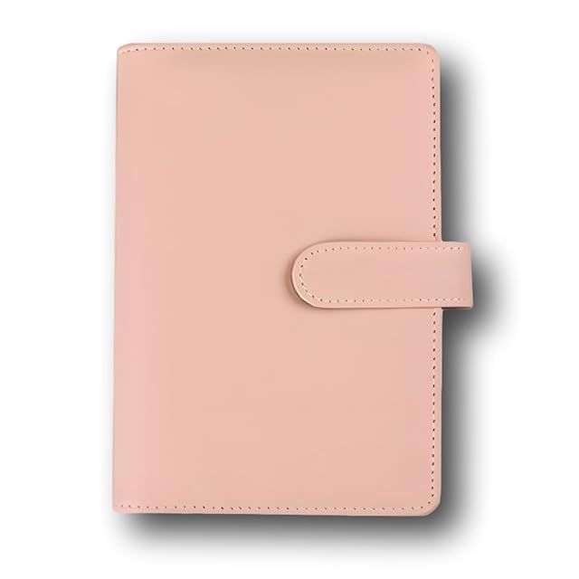 ENN LLC バインダー A6 6穴 PUレザー ポケット12個 ラベル付き (ピンク)