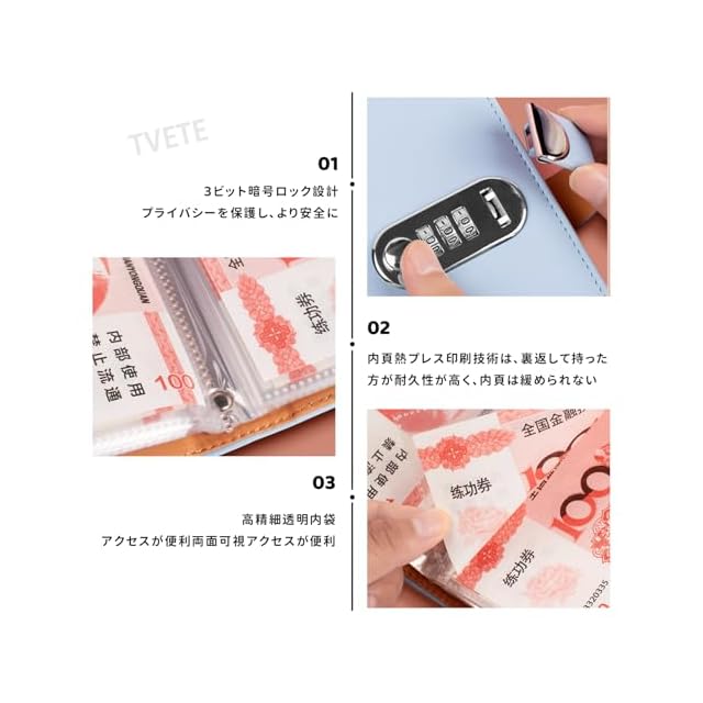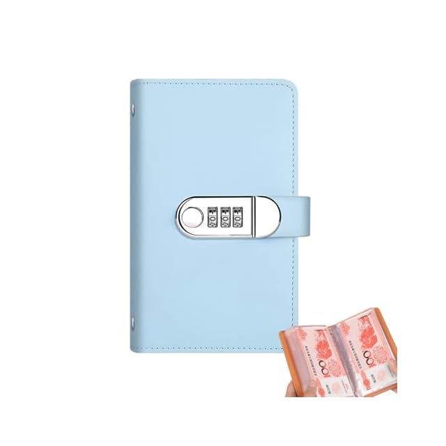 TVETE お札 貯金箱 貯金バインダー お金管理 ファイル パスワードロック付き 表面PUレザー 質感良い 耐摩耗性 資金管理 ホリデーギフト コレクション 日常 貯蓄 セキュリティ 大容量 100枚収納でき (ウォーターブルー 水色)