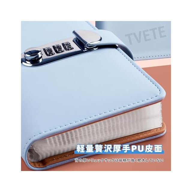 商品名:TVETE お札 貯金箱 貯金バインダー お金管理 ファイル パスワードロック付き 表面PUレザー 質感良い 耐摩耗性 資金管理 ホリデーギフト コレクション 日常 貯蓄 セキュリティ 大容量 100枚収納でき (ウォーターブルー 水色)