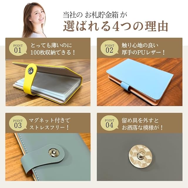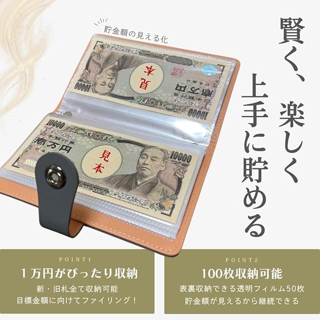 ✅【100万円を目指せる達成感】最大100枚のお札を収納できる本製品は、目標額「100万円」の貯金が可能で、達成感を味わえる設計です。
