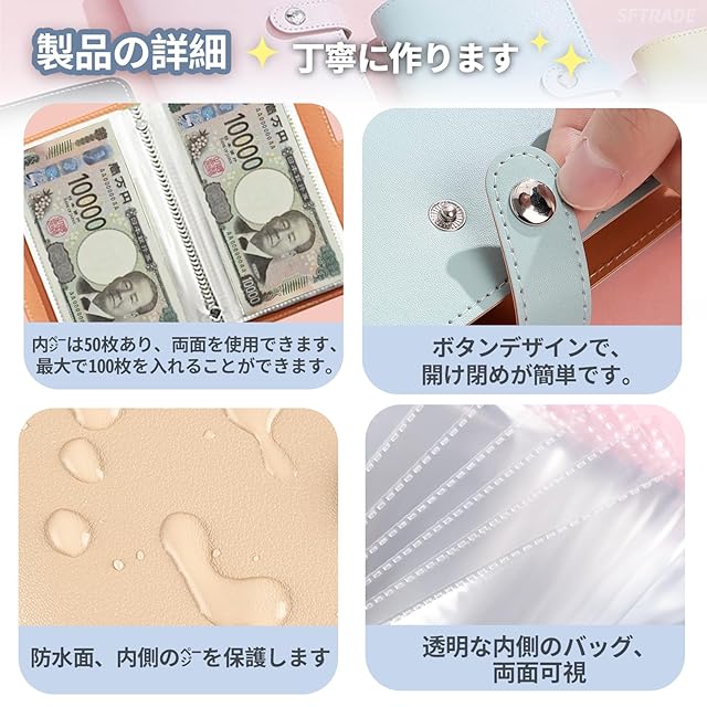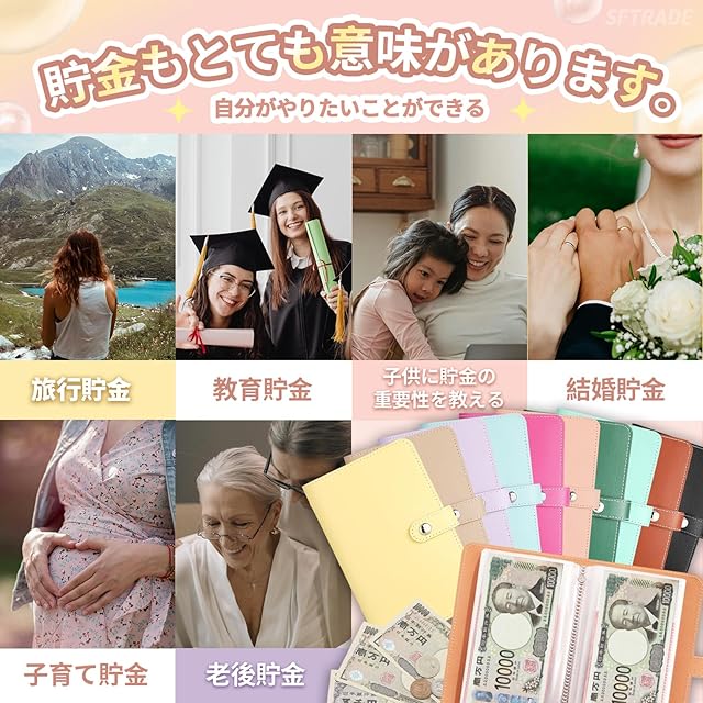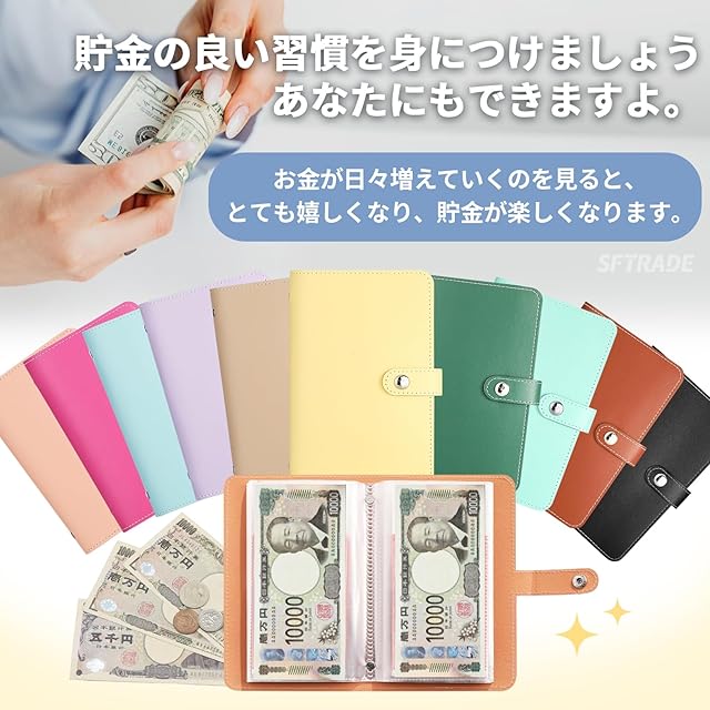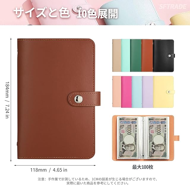 商品名:【SFTRADE】お札 貯金箱 お金仕分け 封筒貯金 ファイル バインダー お札 おしゃれ 貯金計画 災害グッズ コンパクトサイズ (内側のページ 50 ページ、現金100枚を積み重ねることができます) (茶色)