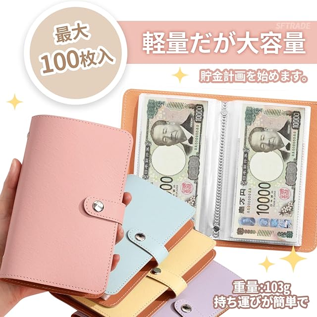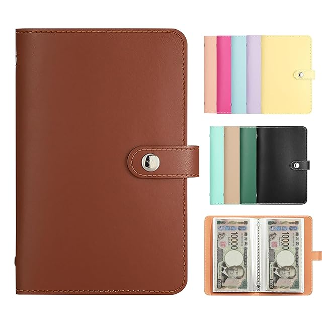 【SFTRADE】お札 貯金箱 お金仕分け 封筒貯金 ファイル バインダー お札 おしゃれ 貯金計画 災害グッズ コンパクトサイズ (内側のページ 50 ページ、現金100枚を積み重ねることができます) (茶色)