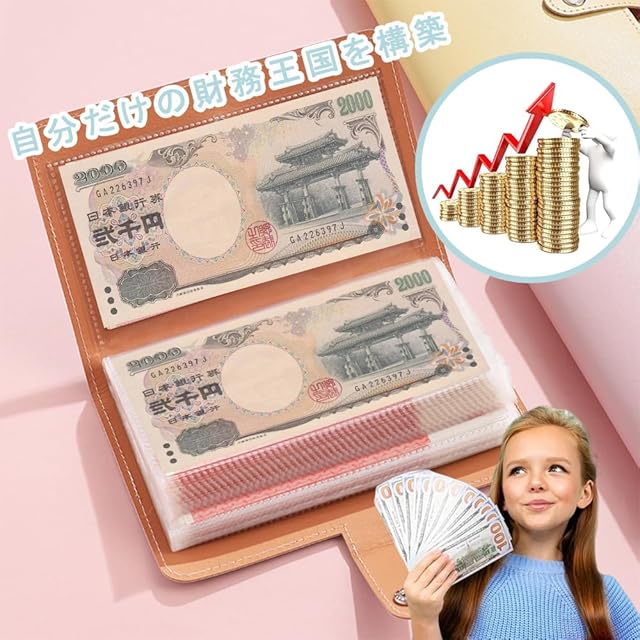 【実用機能】50個のポケット設計により、貯金が簡単で楽しくなります。各ページに2枚の紙幣を収納でき、各預金を明確に管理し、100万円の目標を簡単に達成できます。さらに、信封構造が巧妙に設計されており、入出金がより便利になり、さまざまな支出に柔軟に対応できます。