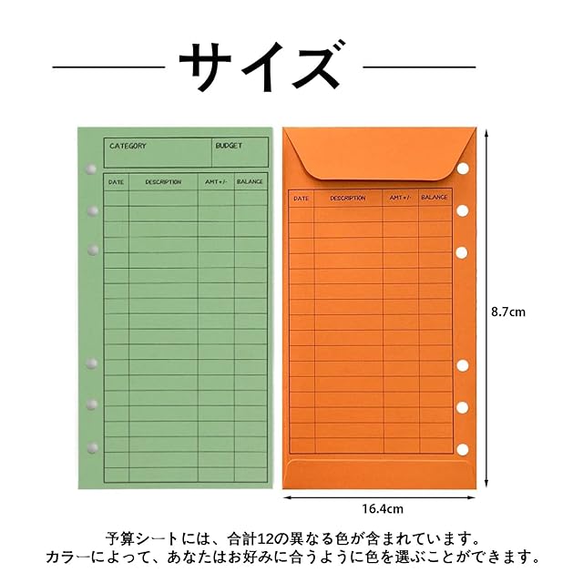 商品名:LOYELEY 現金封筒 予算 6穴 お金管理 予算シート 家庭用 仕事用 予算シート お金管理 家計 (12色 12枚現金封筒+1枚透明バインダー)