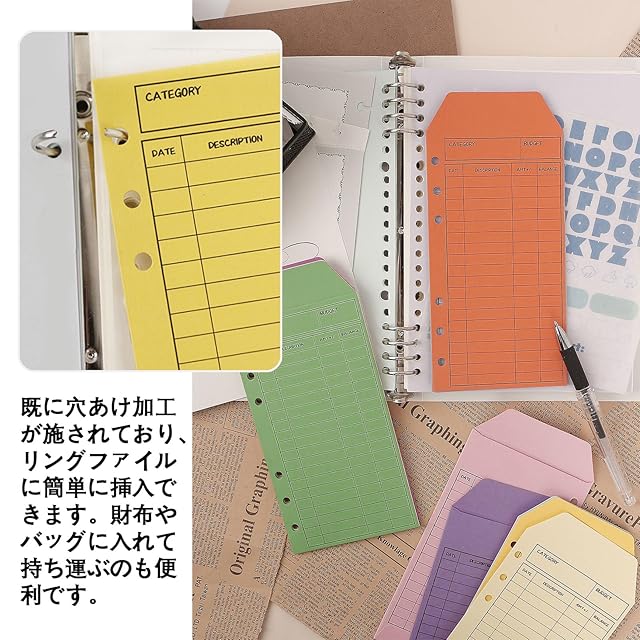 【便利な穴あきデザイン】既に穴あけ加工が施されており、リングファイルに簡単に挿入できます。財布やバッグに入れて持ち運ぶのも便利です。