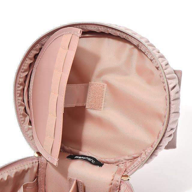 Francfranc フランフラン ベロアリボン バニティポーチ S ピンク 仕切り ポケット付き コスメボックス 化粧道具 収納