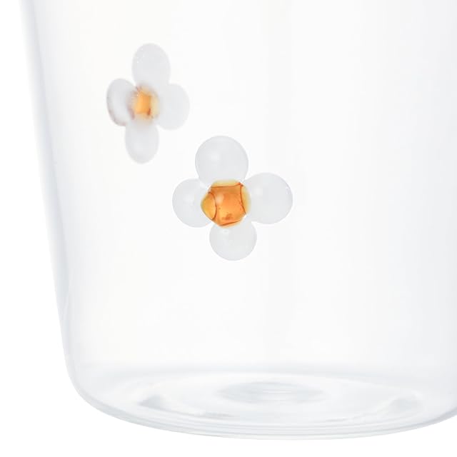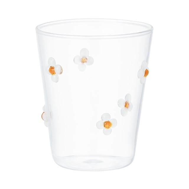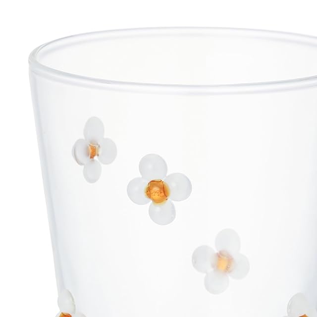 ぷっくりしたお花のモチーフがちりばめられたシンプルなかたちのガラスタンブラーです。<br/>普段使いしやすいかたちにかわいらしさをプラスしました。<br/>カラフルなランチマットやコースターと合わせてコーディネートを楽しめます。<br/>【注意事項】 電子レンジ:不可<br/> オーブン:不可<br/> 食器洗浄機:不可<br/> ハンドメイドのため色・サイズに個体差があります。<br/> 本製品は薄く繊細なガラス製品です。衝撃を与えないようご注意ください。<br/> スプーンやマドラー等の硬いものが強く当たらないようご注意ください。<br/> 火の側で使用しないでください。<br/> 傷がつきやすいクレンザー等の研磨剤や金属タワシは使用せず、柔らかいスポンジ等で洗浄してください。<br/> 熱いうちに冷水や濡れた布等に触れると急冷され製品が破損する場合がありますのでご注意ください。<br/> ひねり洗いはしないでください。<br/> 原産国:中国