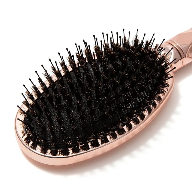動物毛(猪毛)がミックスされたクッション付きブラシで、髪の毛にツヤを出したい方におすすめです。 静電気防止加工を施しており、髪の毛の広がりを抑えて美しく整えます。