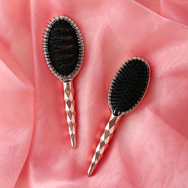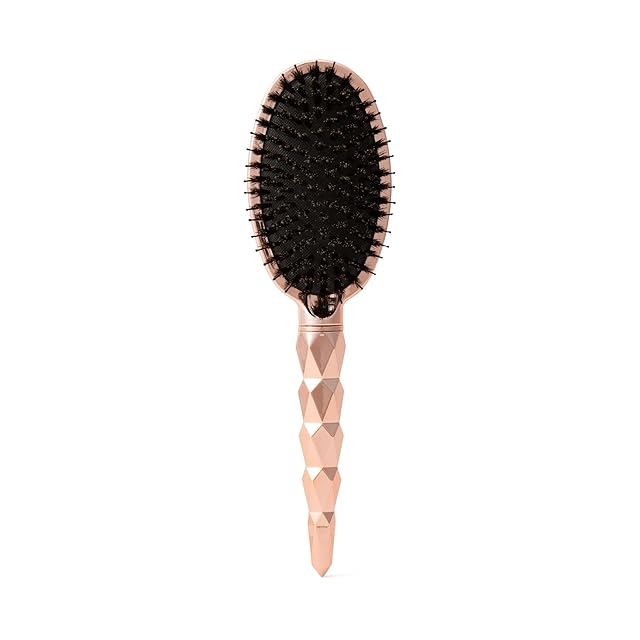 ダイヤモンドカットをイメージしたキラキラとした柄がおしゃれなヘアブラシです。<br/>動物毛(猪毛)がミックスされたクッション付きブラシで、髪の毛にツヤを出したい方におすすめです。<br/>静電気防止加工を施しており、髪の毛の広がりを抑えて美しく整えます。<br/>【注意事項】<br/> 頭皮に傷のあるときや異常の感じられるときは、ご使用をおやめください。<br/> 整髪料を直接ブラシにかけると、ブラシ本体やブラシの毛を変質させることがありますので、お控えください。<br/> 火のそばに置かないでください。