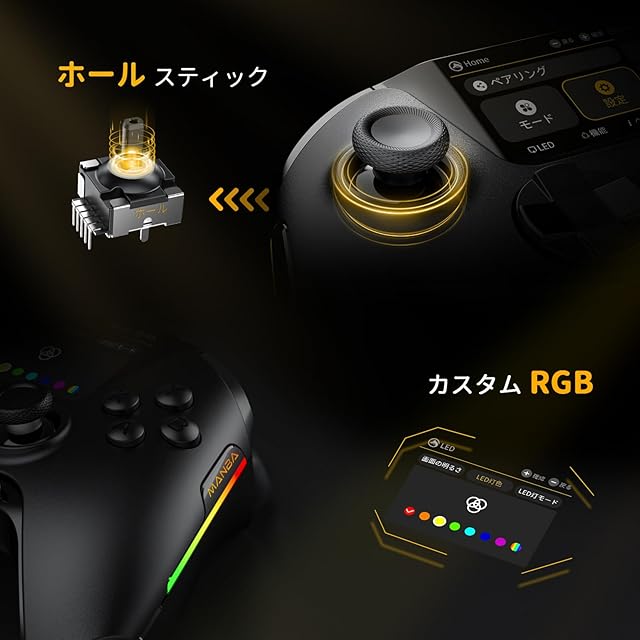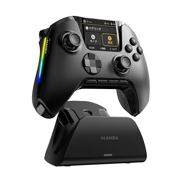 商品名:ManbaOne V2 PC コントローラー 多機能LCDディスプレイ付き Switch2 コントローラー ドリフト防止ホールスティック ホールトリガー 連射機能プロコン PC/Switch2/Android/iOS対応 ゲームパッド 1800mAh大容量バッテリー 4つ背面ボタン 有線/無線接続可能 (黒い)