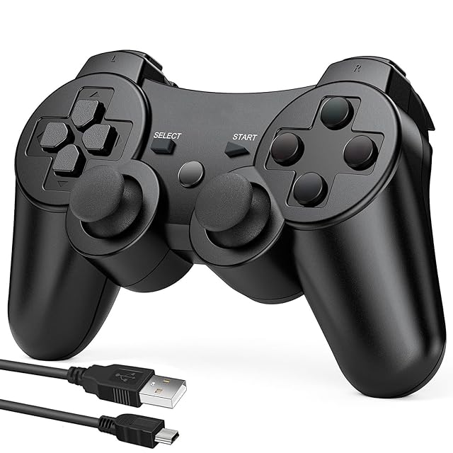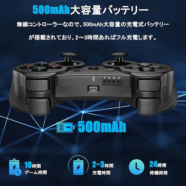 PS3 コントローラー 【2024新登場】500mAh大容量 バッテリー 無線Bluetooth接続 10時間連続使用 USB ケーブル 振動機能 ワイヤレス3コントローラー P3/PC対応 中型語説明書付き