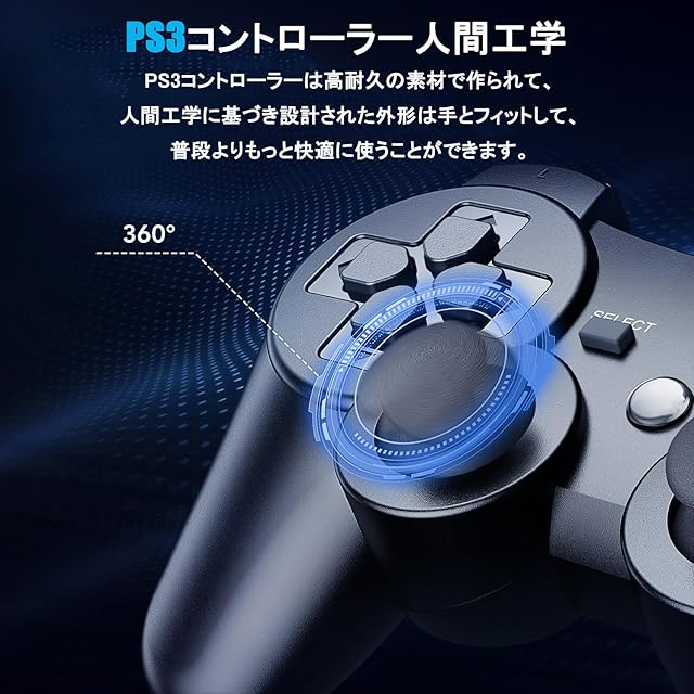 商品名:PS3 コントローラー 【2024新登場】500mAh大容量 バッテリー 無線Bluetooth接続 10時間連続使用 USB ケーブル 振動機能 ワイヤレス3コントローラー P3/PC対応 中型語説明書付き