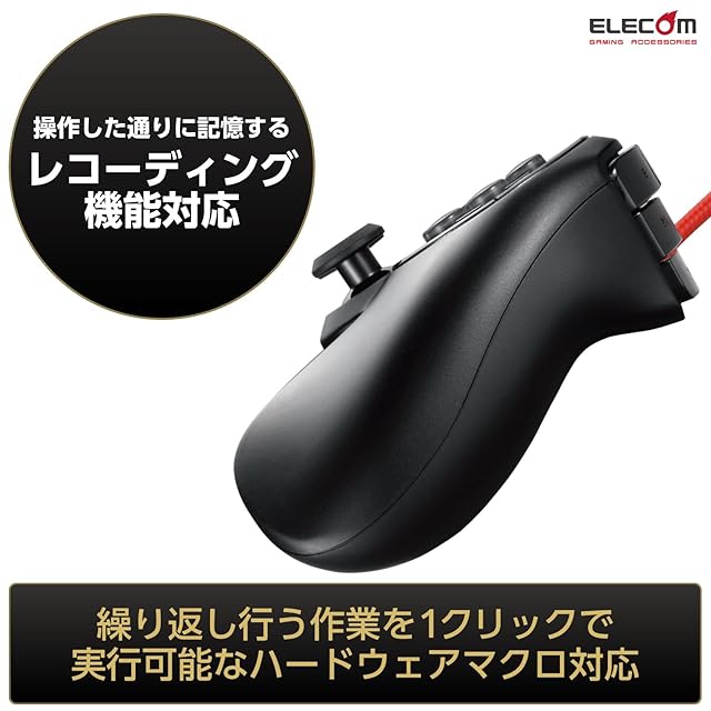 機能:振動:あり(モーター×2)、連射:あり(任意の連射速度に設定可能)、マクロ機能:あり