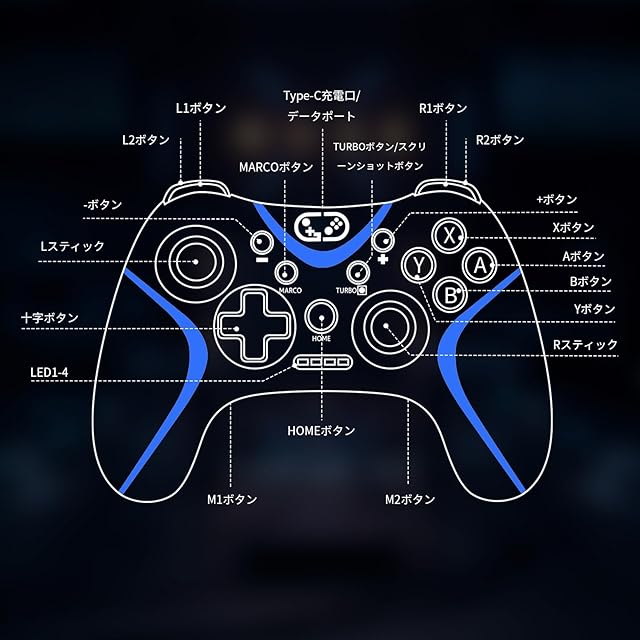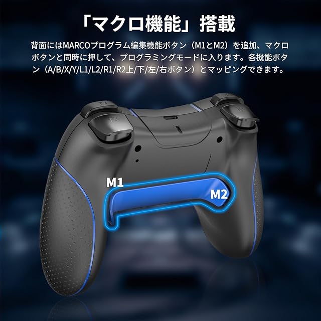 商品名:Switch コントローラー 2025アップグレード Switch2 コントローラー Sungale スイッチ プロコン 自動連射/連射ホールド 背面ボタン付き マクロ機能 Bluetooth5.0接続 6軸ジャイロセンサー 10時間連続使用 連射コン Switch1/2/PC/iOS13.0+/Android対応 日本語取扱説明書付き (ブラック+ブルー)