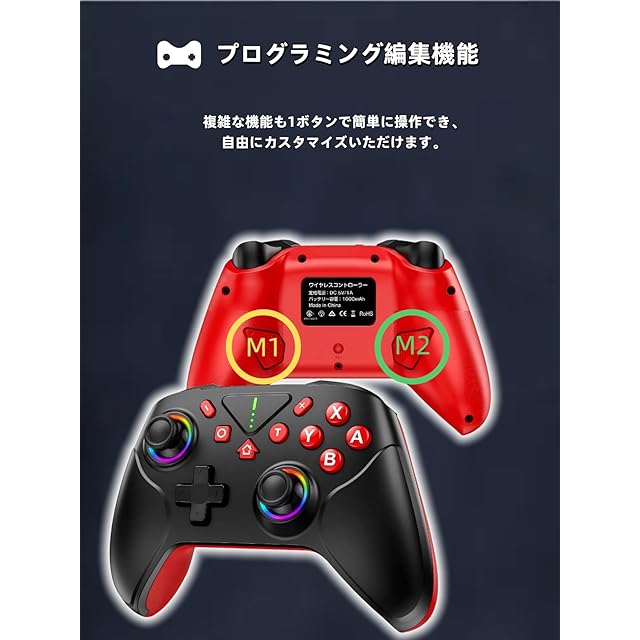 Switch2 コントローラー Switch1/2代対応 TURBO連射機能 1000mAh大容量 Bluetooth 無線接続 ジャイロセンサー搭載 4階段HD振動 Switch全世代に対応 Android/IOS/PCにも対応 日本語取扱説明書付き